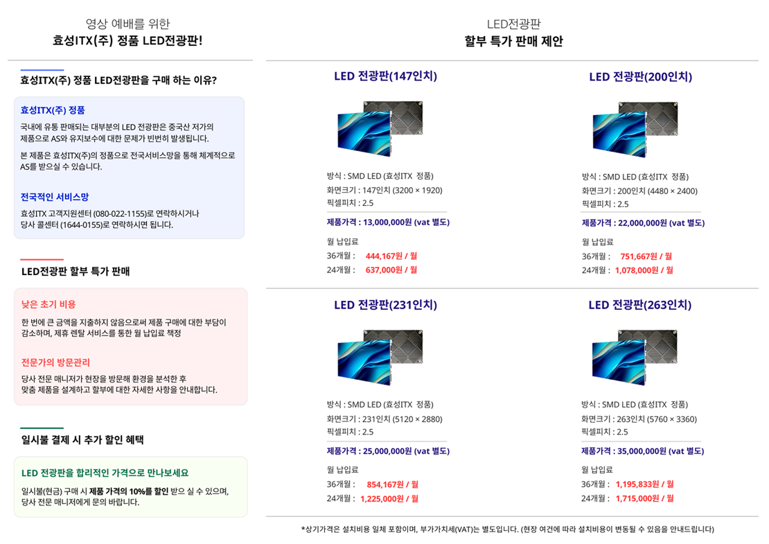 "효성ITX(주) LED 전광판 구독(할부프로그램) 홍보용 팜플렛 배포 안내"